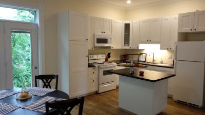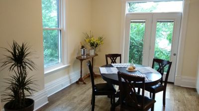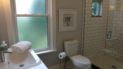 Private off street parking for 2 cars in front of the House - a real benefit in Stratford. An ideal base on a quiet street for visiting both Stratford and the surrounding area. The 1879 home has retained many or its original features including original pine flooring, wooden panel doors and sash windows but is light, spacious and offers comfortable modern living. The home has been completely renovated to include bathroom with in floor heating and large shower. A well equipped and bright kitchen. There is also free high speed wi-fi, direct Ethernet connections throughout & TV with Netflix and cable. Linen and towels are provided as is complimentary tea and coffee and kitchen basics.